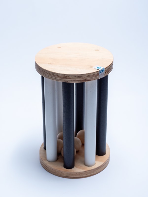 Es una estructura tubular de madera que roda con esferas en su interior. Su objetivo es desarrollar el equilibrio, la coordinación y promover el gateo. Se utiliza en el área de motricidad gruesa. Edad recomendada: +1 año.